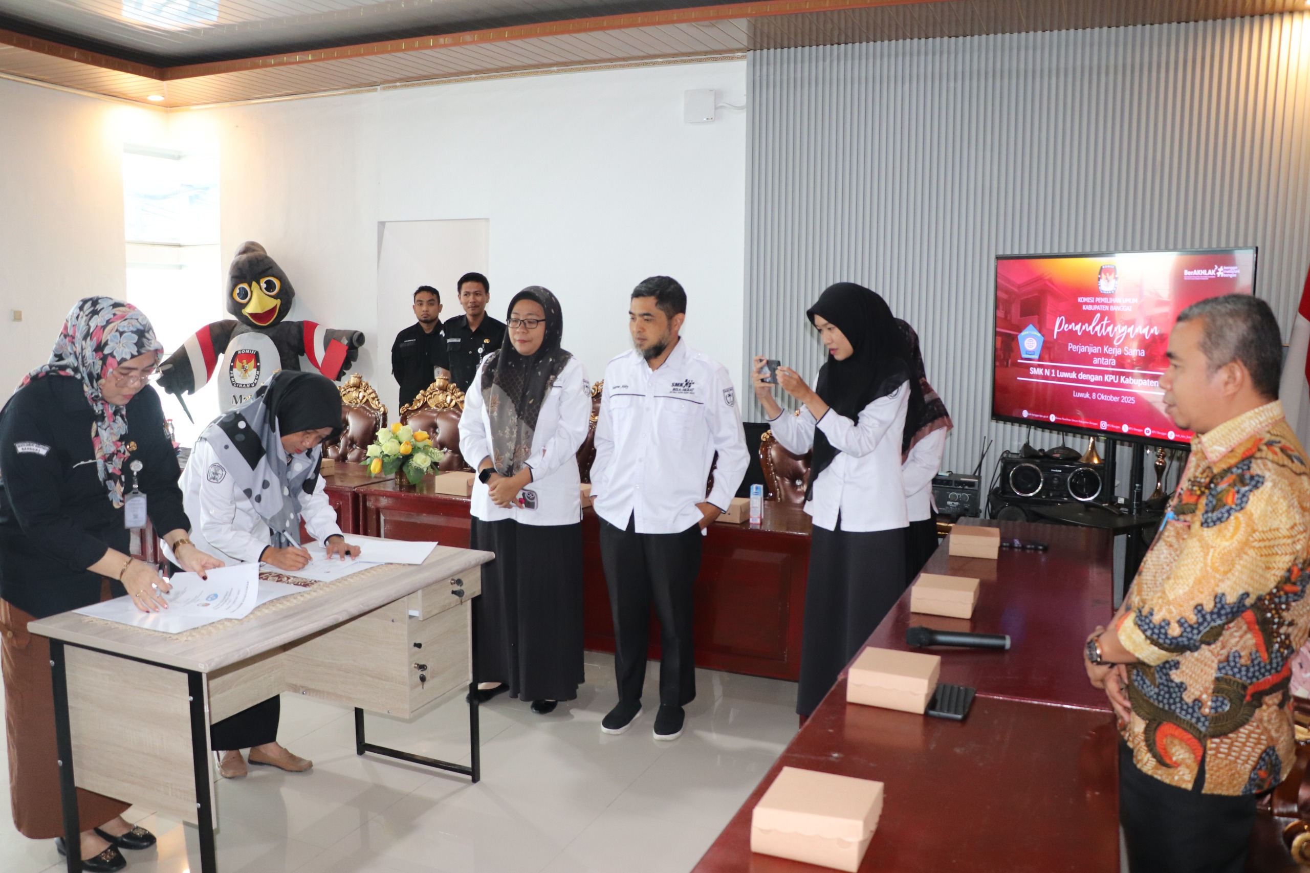 KPU Kabupaten Banggai melaksanakan penandatanganan Perjanjian Kerja Sama (PKS) dengan SMK Negeri 1 Luwuk
