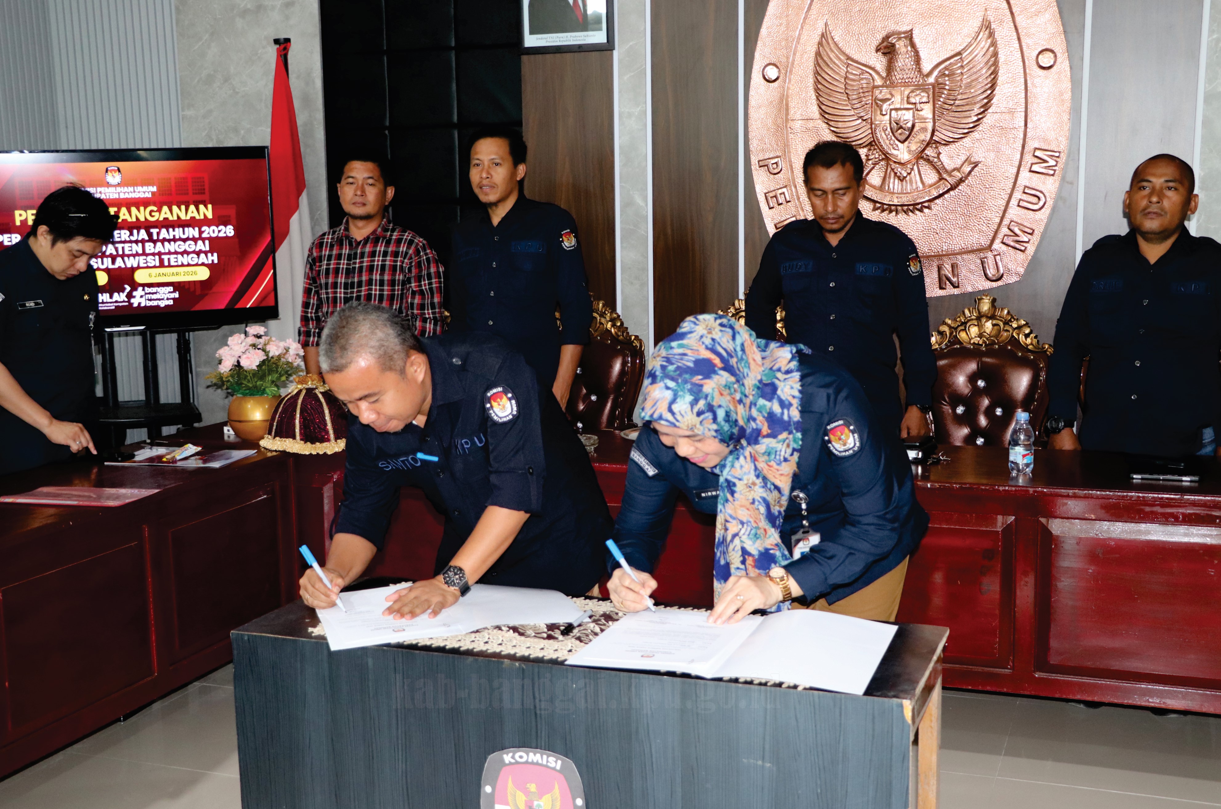 Luwuk, kab-banggai.kpu.go.id, KPU Kabupaten Banggai melaksanakan Penandatanganan Perjanjian Kinerja Tahun 2026 yang dilaksanakan secara serentak oleh KPU Provinsi Sulawesi Tengah, bertempat di Kantor KPU Kabupaten Banggai. Selasa (6/1/2026)