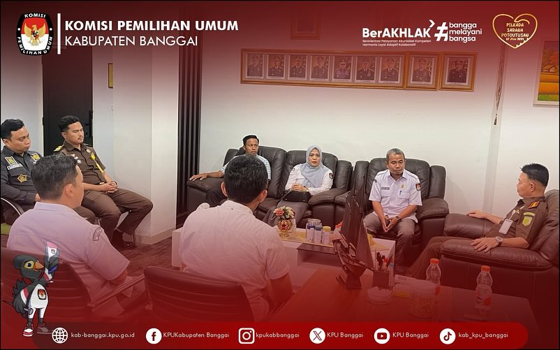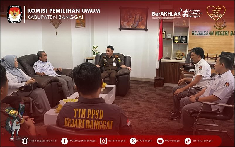 #TemanPemilih Senin, 23 Juni 2025 KPU Kabupaten Banggai melakukan Audiensi bersama Kejaksaan Negeri Kab. Banggai, Audiensi dihadiri oleh Ketua dan Anggota KPU Kab. Banggai, Sekretaris, Kasubag Teknis Penyelenggaraan dan Staf Sekretariat yang bertugas, diterima langsung oleh Kepala Kejaksaan Negeri Banggai, Kepala Seksi Intelijen, dan Kepala Seksi Datun.