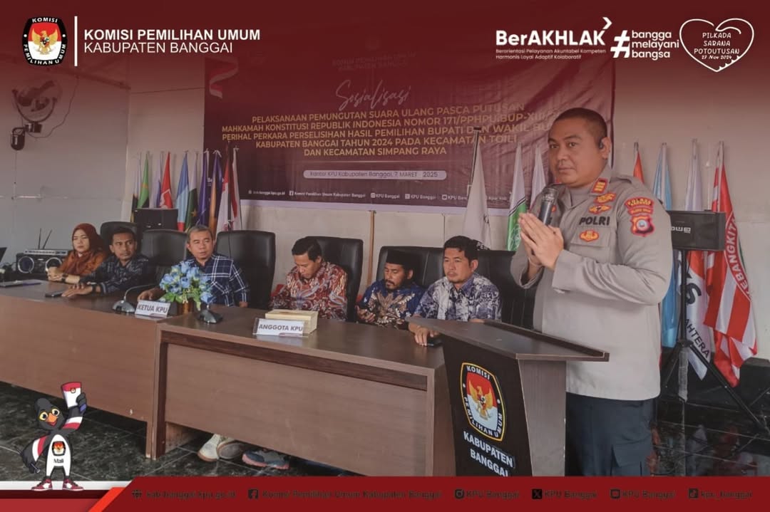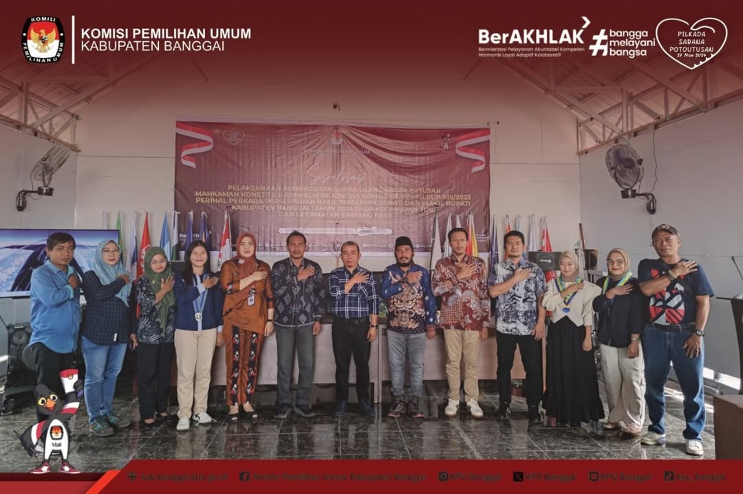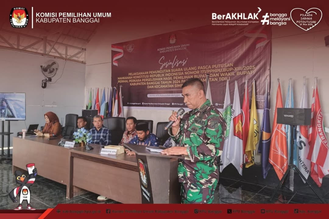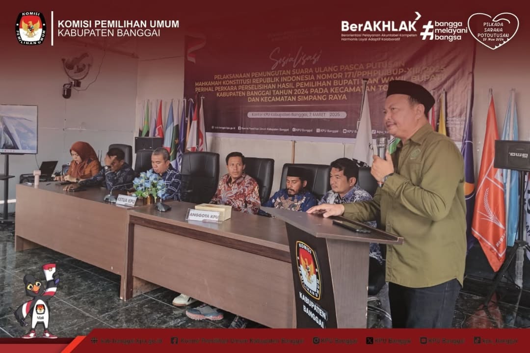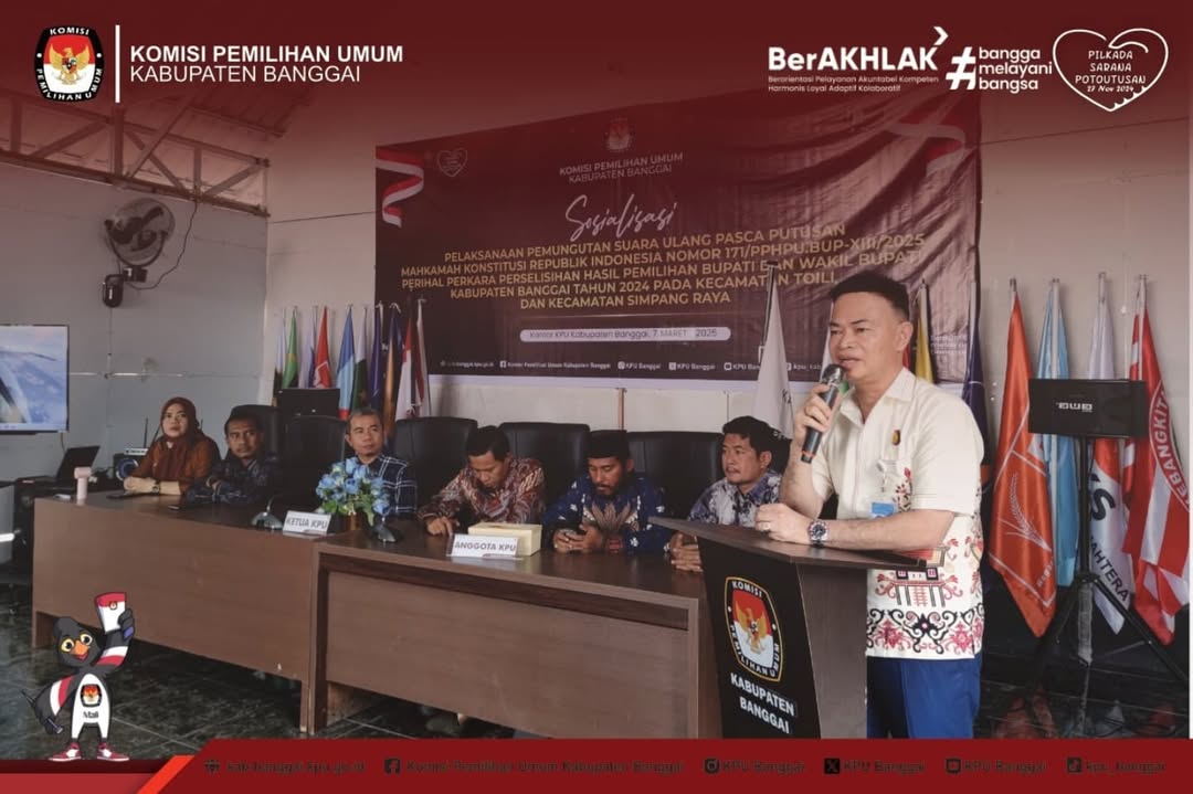KPU Kabupaten Banggai melaksanakan Kegiatan Sosialisasi Pelaksanaan Pemungutan Suara Ulang (PSU) Pasca Putusan Mahkamah Konstitusi Republik Indonesia No. 171/PPHPU.BUP-XXIII/2025 Perihal Perkara Perselisihan Hasil Pemilihan Bupati dan Wakil Bupati Kabupaten Banggai Tahun 2024