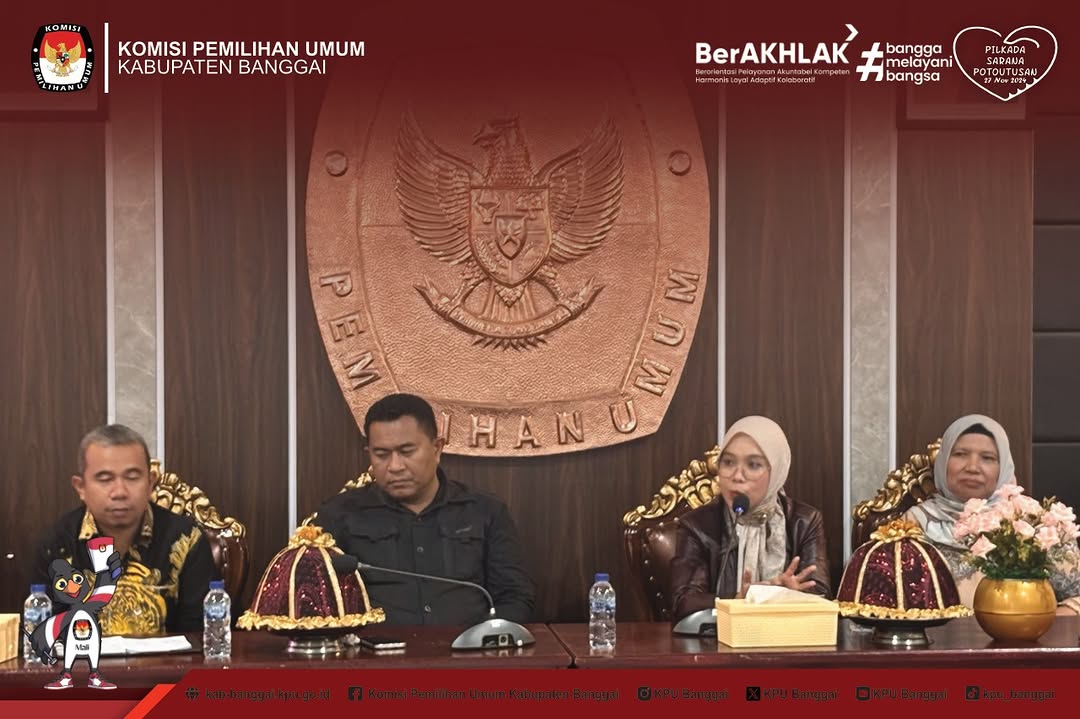 Turut hadir juga Ketua KPU Provinsi Sulawesi Tengah, Bapak Dr. Risvirenol, SS., M.Pd dan Anggota KPU Provinsi Sulawesi Tengah Ibu Darmiati, SH (Divisi Hukum dan Pengawasan).