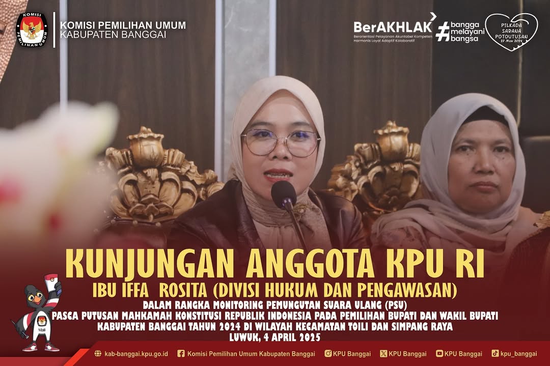 Kunjungan Anggota Komisi Pemilihan Umum Republik Indonesia, Ibu Iffa Rosita (Divisi Hukum dan Pengawasan) dalam rangka Monitoring Pemungutan Suara Ulang (PSU) Pasca Putusan Mahkamah Konstitusi Republik Indonesia pada Pemilihan Bupati dan Wakil Bupati Kabupaten Banggai Tahun 2024 di wilayah Kecamatan Toili dan Simpang Raya