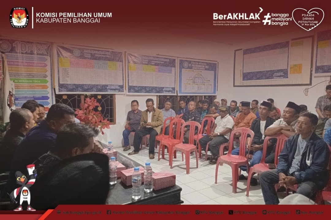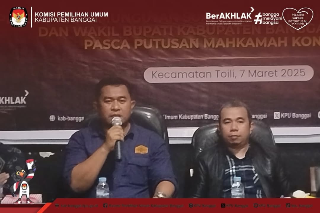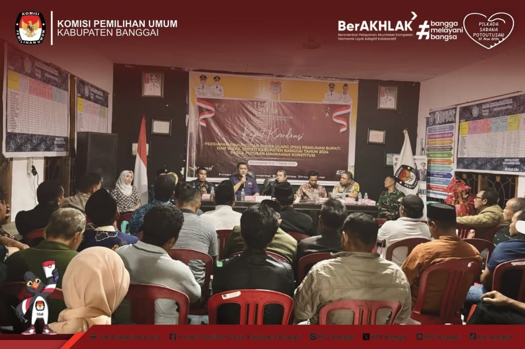 KPU Kabupaten Banggai melaksanakan Kegiatan Rapat Koordinasi Persiapan Pelaksanaan Pemungutan Suara Ulang (PSU) Pasca Putusan Mahkamah Konstitusi Republik Indonesia No. 171/PPHPU.BUP-XXIII/2025 Perihal Perkara Perselisihan Hasil Pemilihan Bupati dan Wakil Bupati Kabupaten Banggai Tahun 2024 pada Kecamatan Toili dan Kecamatan Simpang Raya,