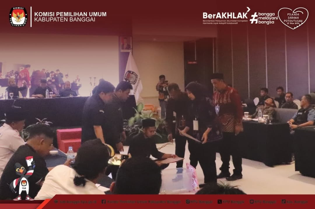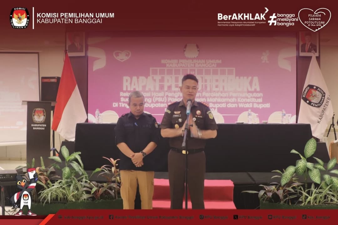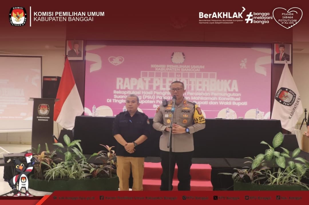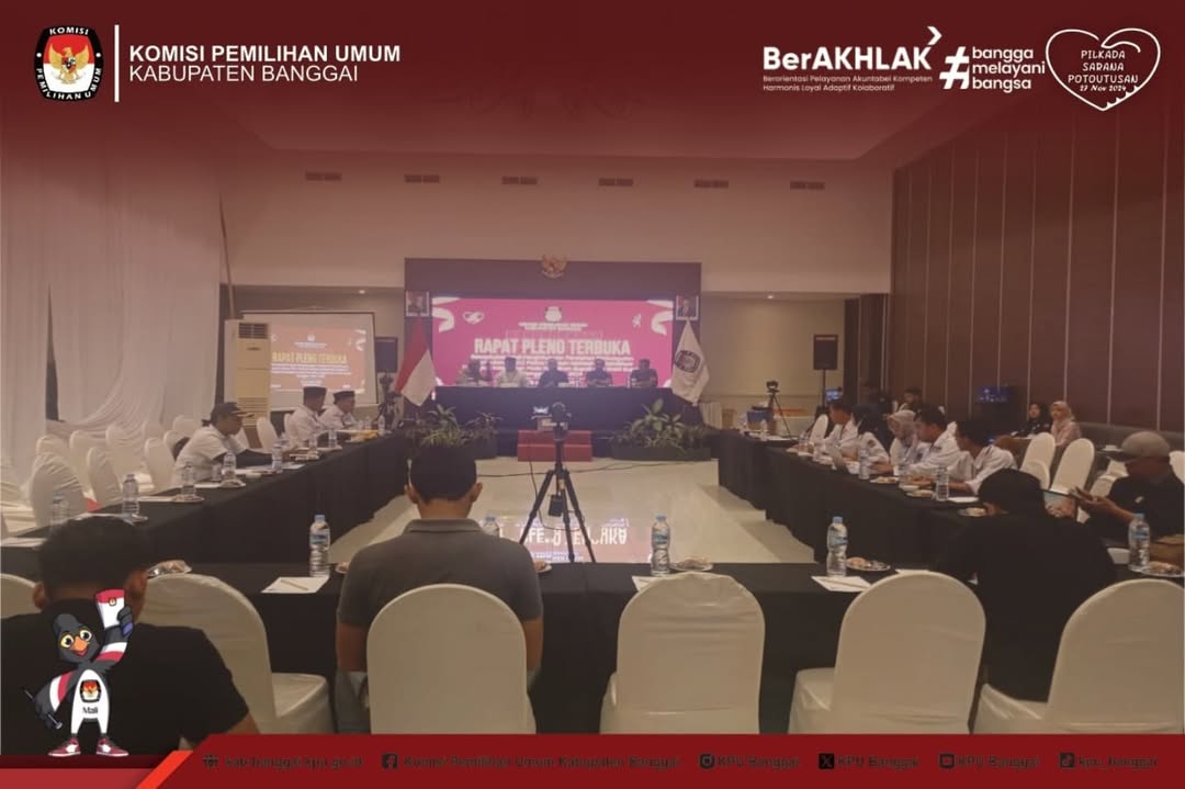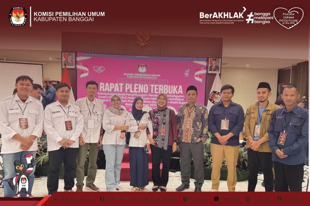 KPU Kabupaten Banggai melaksanakan Rapat Pleno Terbuka Rekapitulasi Hasil Penghitungan Perolehan Pemungutan Suara Ulang (PSU) Pasca Putusan Mahkamah Konstitusi di Tingkat Kabupaten pada Pemilihan Bupati dan Wakil Bupati Banggai Tahun 2024