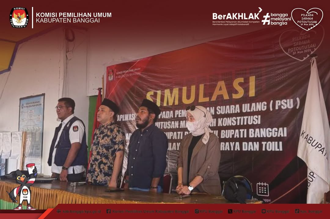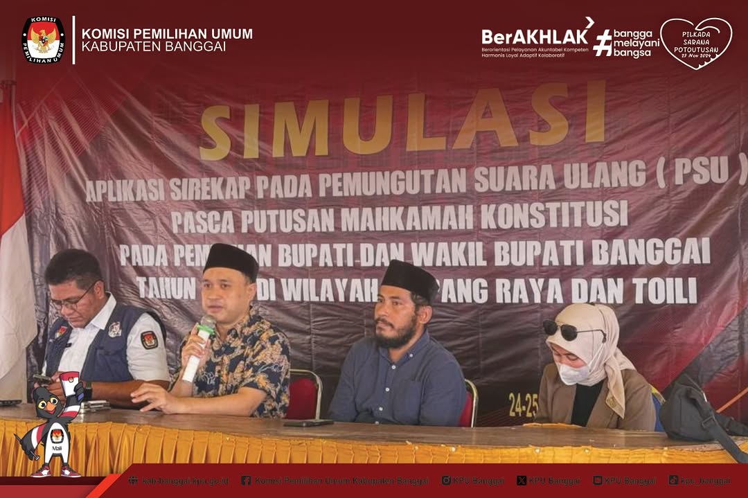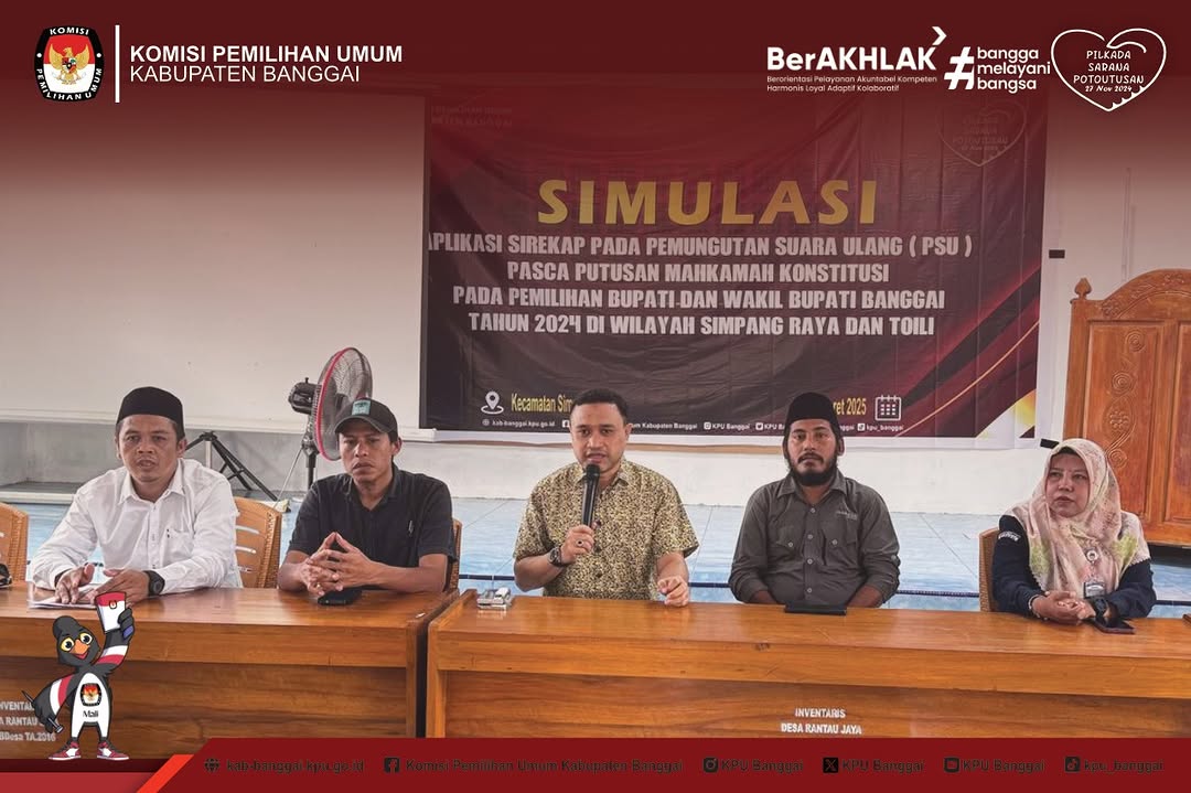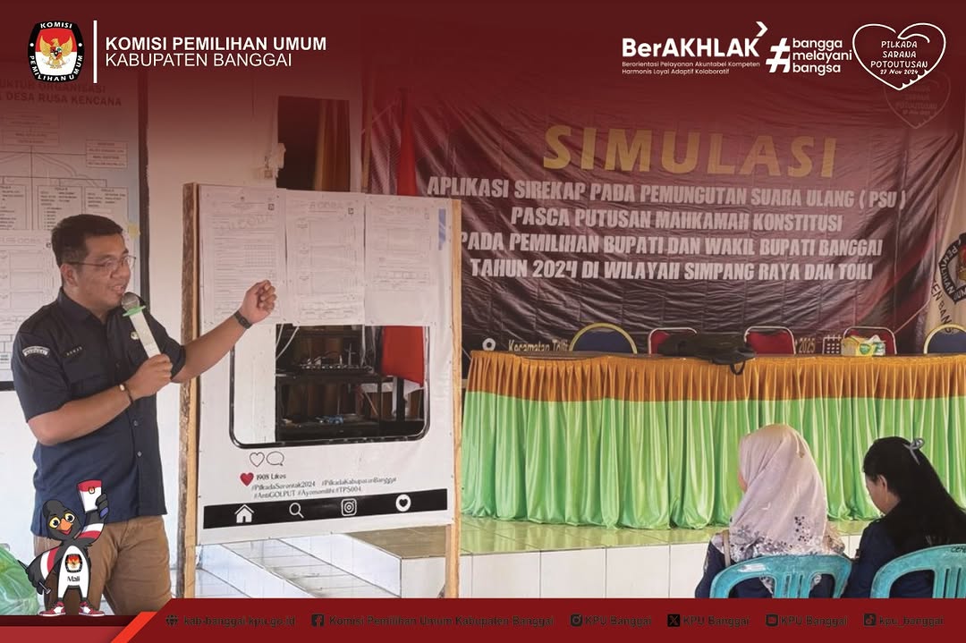 KPU Kabupaten Banggai melaksanakan Kegiatan Simulasi Aplikasi Sirekap pada Pemungutan Suara Ulang (PSU) Pasca Putusan Mahkamah Konstitusi Republik Indonesia pada Pemilihan Bupati dan Wakil Bupati Kabupaten Banggai Tahun 2024 di wilayah Kecamatan Toili dan Simpang Raya