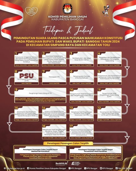 Tahapan dan Jadwal Pemungutan Suara Ulang (PSU) Pasca Putusan Mahkamah Konstitusi pada Pemilihan Bupati dan Wakil Bupati Kabupaten Banggai Tahun 2024