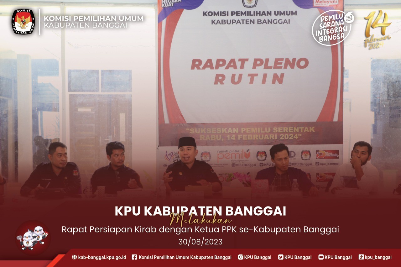 #temanpemilih, Komisi Pemilihan Umum (KPU) Kabupaten Banggai menggelar rapat parsiapan pelaksanaan kirab Pemilu tahun 2024 di Kabupaten Banggai bertempat di kantor KPU Kabupaten Banggai yang beralamat di kompleks perkantoran Bukit halimun pada hari rabu (31/08/2023). Rapat tersebut dihadiri oleh seluruh ketua Panitia Pemilihan Kecamatan (PPK) se-Kabupaten Banggai yang berjumlah 23 kecamatan. Dalam rapat tersebut membahas tentang persiapan kirab pemilu yang dilakukan di tingkat PPK, penentuan jalur kirab pemilu, dan apa saja kendala-kendala yang akan dihadapi dalam pelaksanaan kegiatan tersebut. Kirab Pemilu tahun 2024 di Kabupaten Banggai direncanakan akan dilaksanakan selama 2 hari yaitu dari tanggal 14 sampai 15 September 2023. Kegiatan Kirab Pemilu tanggal 14 akan diisi dengan sosialisasi pendidikan pemilih pemula kepada siswa-siswa Sekolah Menengah Atas (SMA)di masing-masing kecamatan. Dan Kegiatan Tanggal 15 September akan dilakukan konvoy oleh masing-masing kecamatan yang terbagi 3 grub berdasarkan kecamatan terdekat dengan 3 titik start yaitu Kec. Nuhon, Kec. Bualemo, dan Kec. Toili Barat serta akan berakhir di Kantor KPU Kab. Banggai. Penulis-Tim Hupmas KPU Kab. Banggai #pemilusaranaintegrasibangsa #kpubanggai #pemiluserentak2024