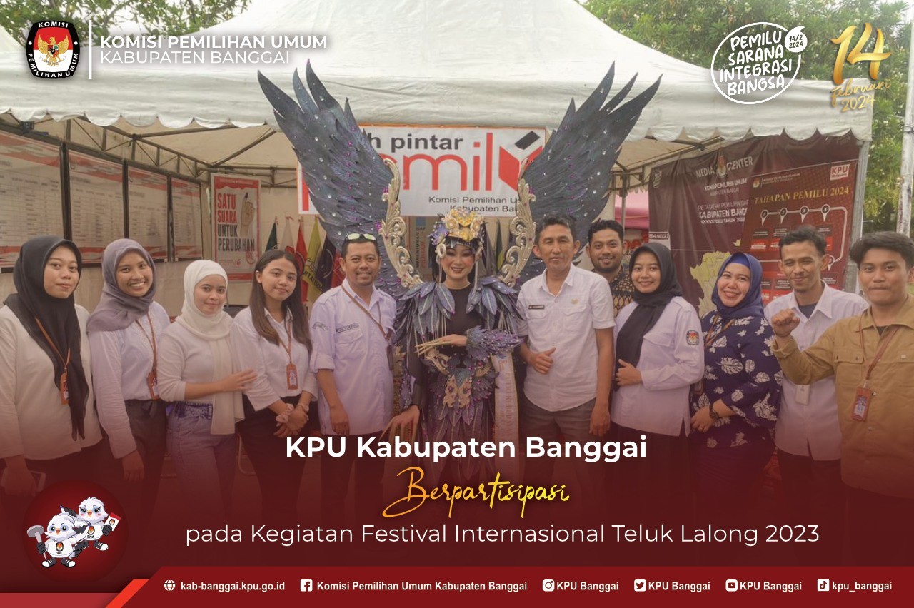 #temanpemilih KPU Kabupaten Banggai berpartisipasi pada kegiatan Festival Internasional Teluk Lalong Tahun 2023, bersama Maskot Pemilihan Umum Tahun 2024 Sura Sulu, KPU Kabupaten Banggai menarik perhatian sejumlah pengujung baik dari peserta karnaval maupun masyarakat yang hadir dalam pembukaan festival yang bertempat di Teluk Lalong, Kamis 24 Agustus 2023 Kegiatan ini tidak hanya menampilkan warga lokal dan nasional yang tampil memukau dengan pakaian adat budaya masing-masing tetapi diikuti oleh lima negara yaitu Korea Selatan, Thailand, Lituania, Latvia, dan Estonia dengan menampilkan karya seni negara masing-masing sehingga banyak menarik minat wisatawan mancanegara maupun lokal untuk berkunjung di Kabupaten Banggai, momen ini dapat menjadi kesempatan untuk KPU Kabupaten Banggai dalam mensosialisakian jadwal dan tahapan pemilihan umum, partai polik peserta pemilu dan pendidikan pemilih. KPU Kabupaten Banggai juga membuka layanan Helpdesk DPTb untuk melayani masukan dan tanggapan masyarakat jika belum terdaftar sebagai pemilih pada pemilihan umum tahun 2024. Helpdesk layanan DPTb dibuka selama 7 hari pada tanggal 24 Agustus dan berakhir pada 30 Agustus 2023 selama festival ini berlangsung. Semoga dengan adanya kegiatan ini dapat membantu menyebarluaskan informasi kepemiluan terutama pendidikan pemilih kepada masyarakat sehingga dapat mesukseskan pemilihan umum di Kabupaten Banggai yang akan berlangsung pada tanggal 14 Februari 2024. #temanpemilih #pemilihsaranaintegrasibangsa #pemilihanserentak2024