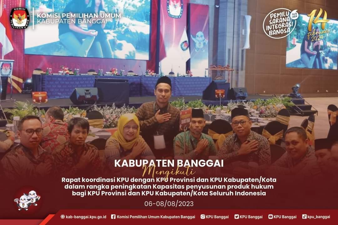 #TemanPemilih, Ketua Divisi Sosialisasi Pendidikan Pemilih, Partisipasi Masyarakat dan SDM KPU Kab. Banggai, Mahmud dan didampingi oleh Kepala Sub Bagian Hukum dan SDM, Sahrul Saluki mengikuti rapat koordinasi Evaluasi Pembentukan Badan Adhoc Pemilu Tahun 2024 Gelombang II di Kota Batu, Malang, Selasa (08/08/2023).