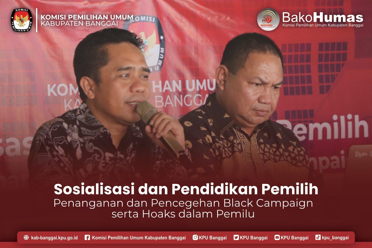 KPU Banggai menggelar Sosialisasi dan Pendidikan Pemilih bertema "Penanganan dan pencegahan black campaign serta hoaks dalam pemilu" di beach cafe luwuk pada hari senin (13/02/2023).