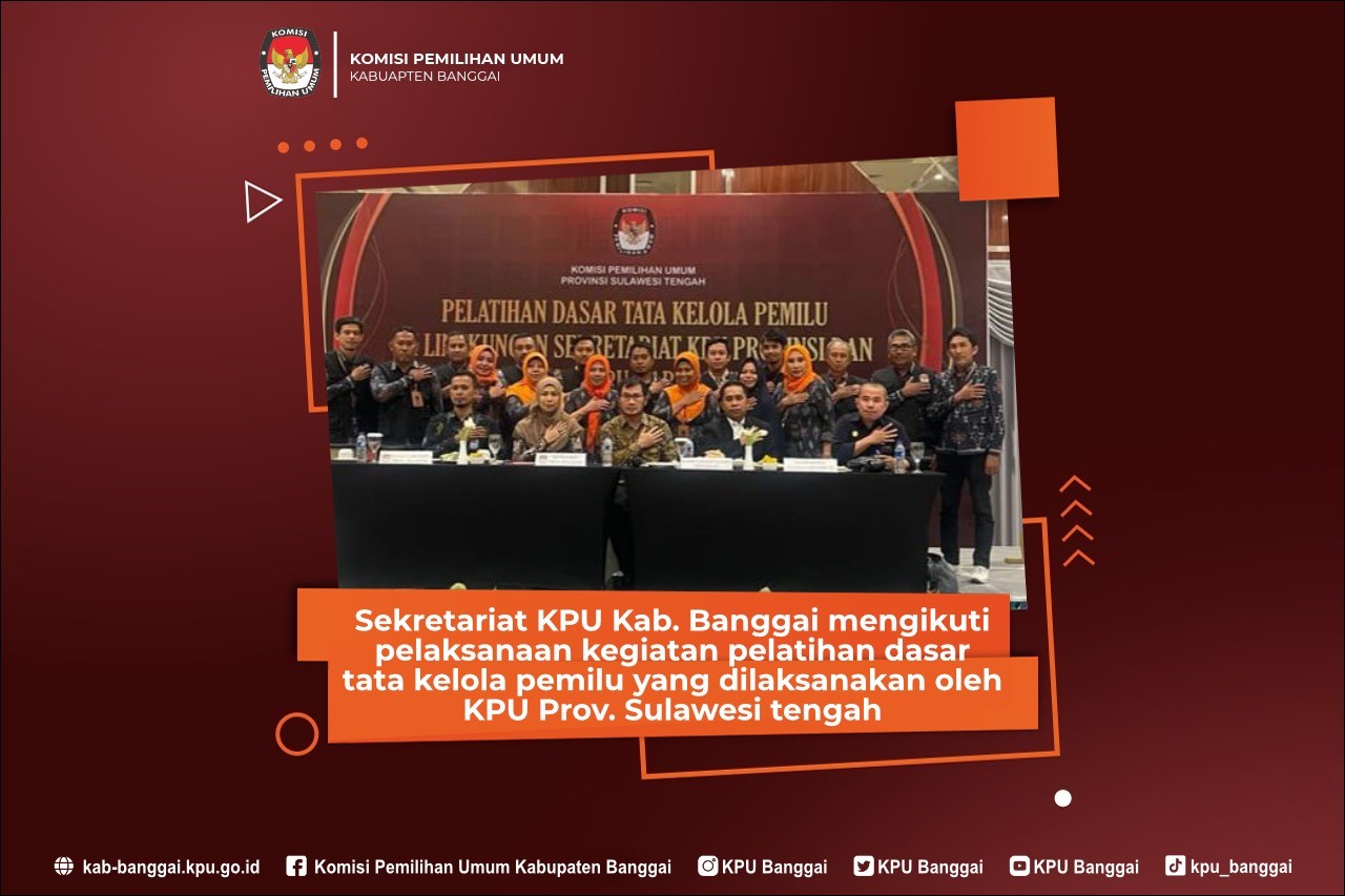 Sekretariat KPU Kab. Banggai mengikuti pelaksanaan kegiatan pelatihan dasar tata kelola pemilu yang dilaksanakan oleh KPU Prov. Sulawesi Tengah pada tanggal 19 Juli 2022 bertempat hotel Sriti Conversation Palu dan dihadiri oleh seluruh ASN sekretariat kpu provinsi dan sekretariat kpu kab/kota se-sulawesi tengah.