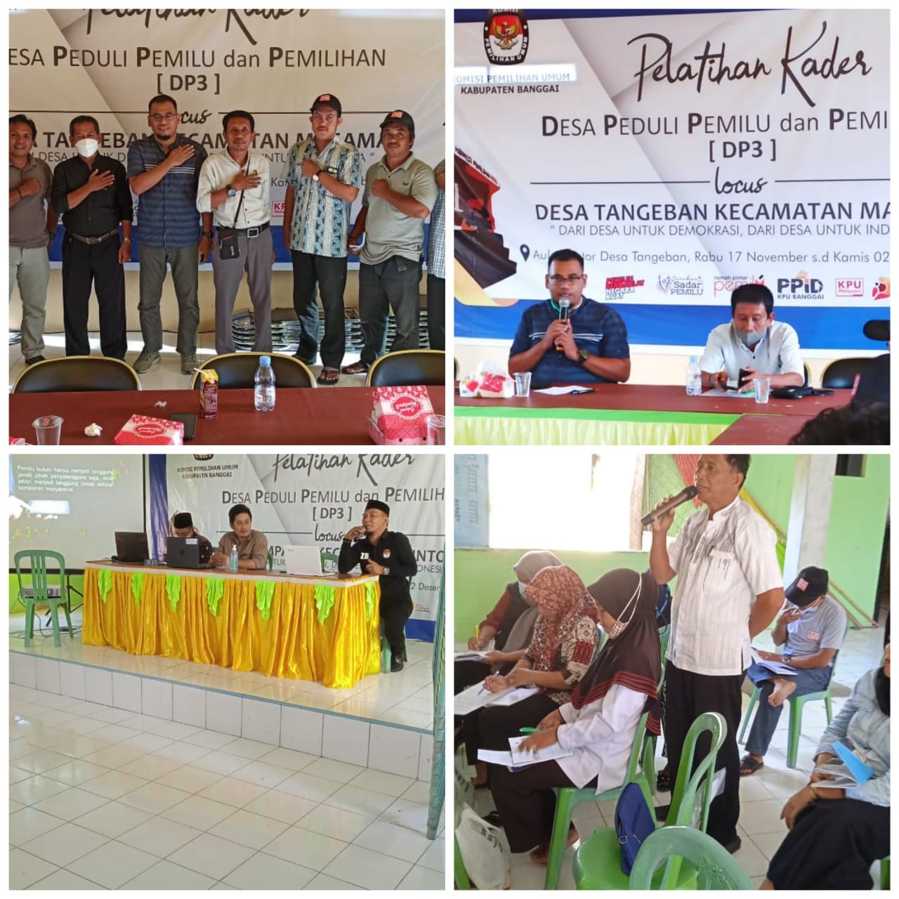 Hari ke 3 Pelatihan Desa Peduli Pemilu dan Pemilihan KPU Kabupaten Banggai ( 23 november 2021) di di Desa Tangeban dan Kintom dengan Materi sesi 5 Teknik dan metode identifikasi berita bohong (Hoaks) dan sesi ke 6 modus operandi dan solusi kampanye SARA Fasilotator kedua sesi ini adalah Komisioner KPU Kabupaten Banggai di Tangeban Makmur Manesa, Alwin Palalo dan Supriadi Lawani. Nara Sumber Bony Sambaeta dari Dinas Informasi dan Komunikasi Kabupaten Banggai membawakan materi teknik dan metode identifikasi berita bohong (hoaks), dan Isnanto Bija Dosen tetap Untika Luwuk membawakan materi modus operandi dan solusi kampanye SARA. Sedangkan di kintom Fasilitator Zaidul Bahri Mokoagow dan Atriani komisioner KPU Banggai, Narasumber Rahman Sangkota Anggota Bawaslu Kabupaten Banggai membawakan materi Teknik dan metode identifikasi berita Bohong (hoaks) dan Wahyudin Sangkota dari Dinas Kesatuan Bansa dan Politik Kabupaten Banggai membawakan materi Modus Operandi dan Solusi Kampanye SARA. Dari pemapran materi dan tanya jawab kedua sesi tersebut dapat disimpulkan yaitu yang pertama berita adalah laporan tercepat mengenai fakta atau ide terbaru yang benar, menarik dan atau penting bagi sebagian besar masyarakat, melalui media berkala seperti surat kabar, radio, televisi atau media online dan lain sebagainya. Kedua berita bohong (hoaks) adalah informasi yang sesungguhnya tidak benar, tetapi dibuat seolah-olah benar adanya. Hal ini memberikan dampak negatif bagi sendi-sendi kehidupan, baik ekonomi, politik, sosial-budaya, serta keamanan. Ketiga cara mengidentifikasi berita bohong (hoaks) adalah mencari sumber dan media berita, adanya penyebaran berita yang masif, tidak adanya foto atau video pendukung. Melakukan pengecekan terkait berita/informasi hoaks melalui laman milik Kementerian Komunikasi dan informatika yaitu cekfakta.com atau turnbackhoax.id. Keenpat berita bohong biasanya tidak memenuhi unsur-unsur berita (5W 1H) atau dalam Bahasa Indonesia dikenal dengan “Adik Simba” (apa, di mana, kapan, siapa, mengapa, bagaimana). Kelima kampanye SARA dapat memecah persatuan dan kesatuan bangsa/ NKRI. Keenam Kunci dari mencegah pengaruh Kampanye SARA adalah dengan mengembangkan sikap dan perilaku toleransi dan tenggang rasa dalam kehidupan sehari-hari. Ketuujuh partisipasi masyarakat sangat diperlukan dalam mencegah terjadinya Kampanye SARA, misalnya dengan melaporkan bila terjadi Kampanye SARA di lingkungannya.