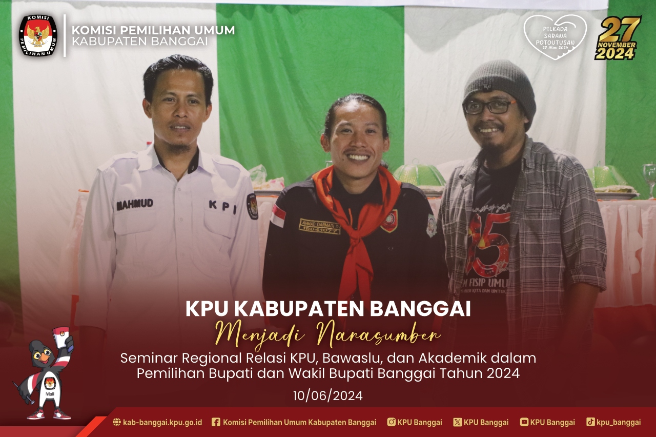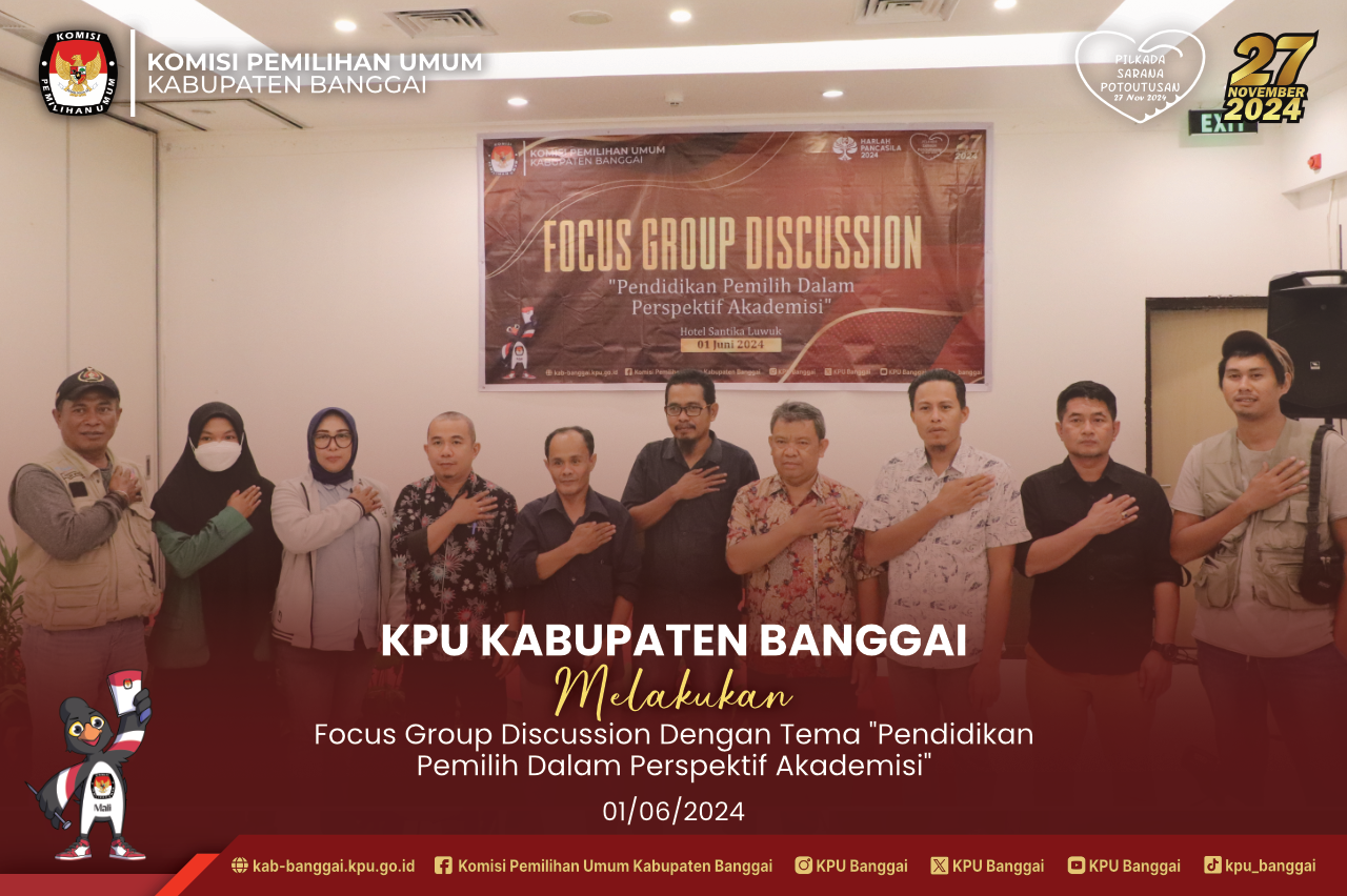 Luwuk, KPU Kabupaten Banggai melaksanakan Focus Group Discussion (FGD) bersama akademisi dengan tema "Pendidikan Pemilih Dalam Perspektif Akademisi" di Hotel Santika Luwuk pada hari Sabtu (01/06/2024). Kegiatan ini dihadiri oleh Ketua KPU Kabupaten Banggai Santo Gotia, bersama anggota lainnya yakni Hidayat Helingo dan Mahmud, serta didampingi Sekretaris KPU Kabupaten Banggai Nirwana dan jajaran Sekretariat. Turut hadir dalam kegiatan ini Wakil Rektor 3 Universitas Tompotika Luwuk yaitu Dr. Hamdin Husin, Wakil Dekan 1 Fisip Universitas Muhammadiyah Luwuk yaitu Ade Putra Ode Amane, S.Sos.,M.Si, Dosen Poltekes Luwuk yaitu Djadid Subchan, dan Nadia, salah satu mahasiswa dari Unismuh Luwuk. Kegiatan ini membahas tentang permaslahan dalam pelaksanaan tahapan pemilihan khususnya yang berkaitan dengan tingkat partisipasi pemilih dan tingkat kerawanan politik uang di Kabupaten Banggai. Tujuannya agar menghasilkan terobosan untuk menangani permasalahan tersebut. Dalam sambutannya, Santo Gotia menyampaikan bahwa diharapkan pada saat pelaksanaan pemilihan Bupati dan Wakil Bupati Banggai yang akan dilaksanakan nanti angka pertisipasi bisa meningkat karena tanggung jawab dan kesadaran pemilih terhadap kewajibannya. Dikesempatan yang sama anggota KPU Banggai yaitu Mahmud menyampaikan bahwa masukan dan saran dari pihak akademisi perlu dilakukan untuk turut menekan isu politik uang sebagaimana rilis bawaslu (banggai rawan tertinggi ke dua), narasi intelektual harus hadir dalam perhelatan panggung demokrasi pemilihan kepala daerah di Kabupaten Banggai . (Humas : Nurul; Foto : Aldi; Editor : Aldi)