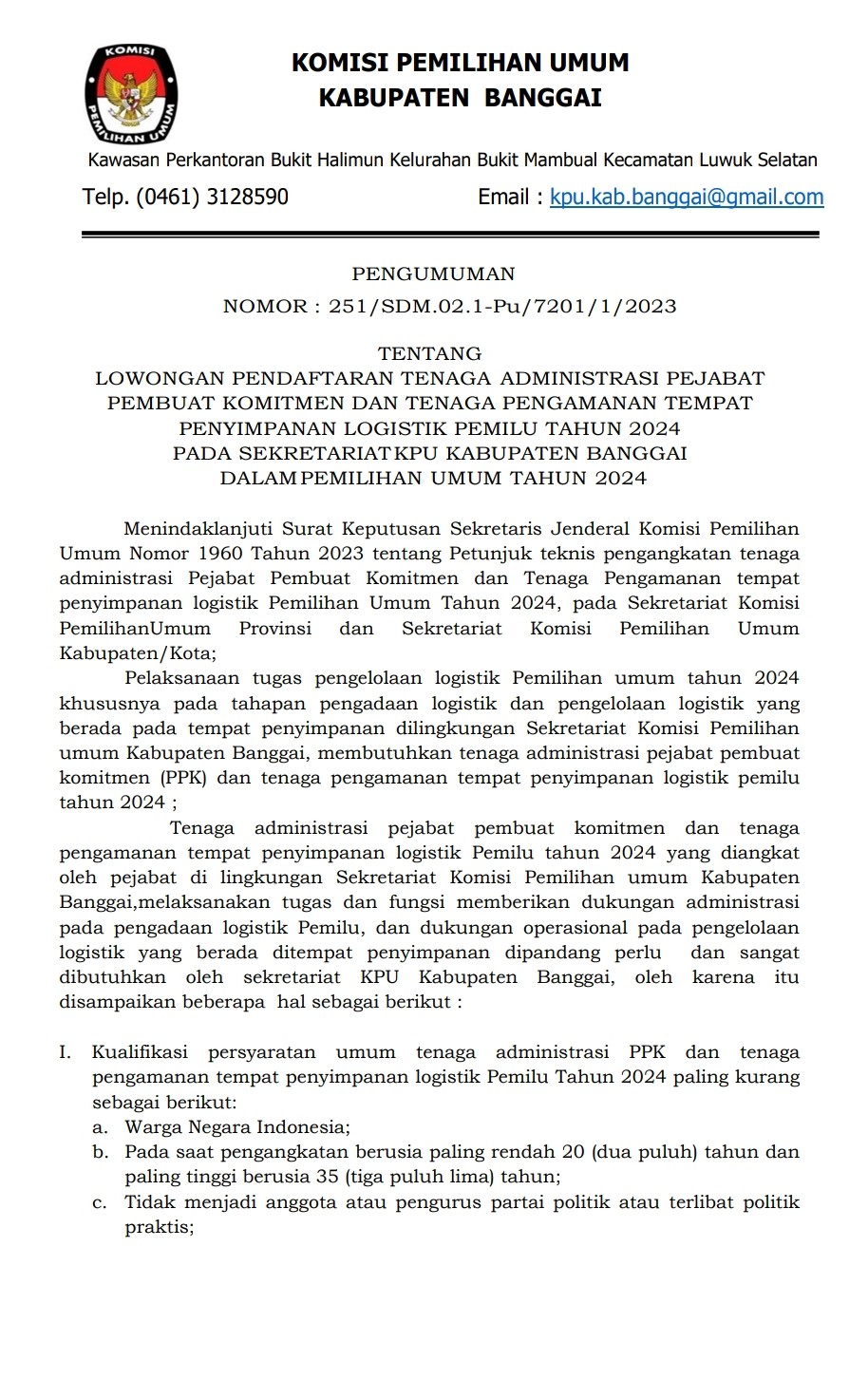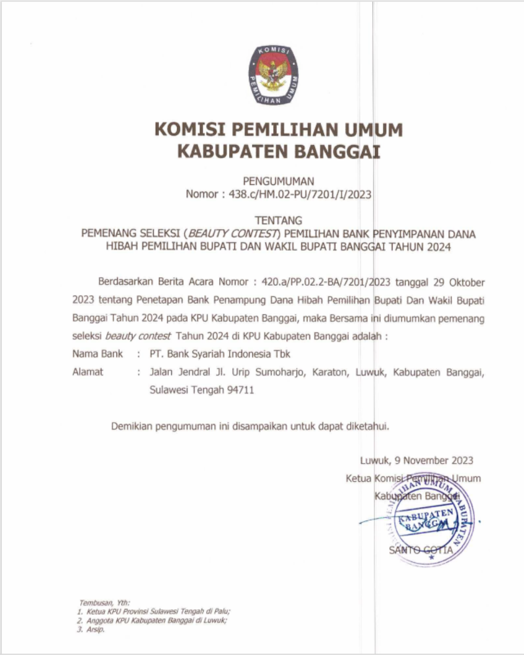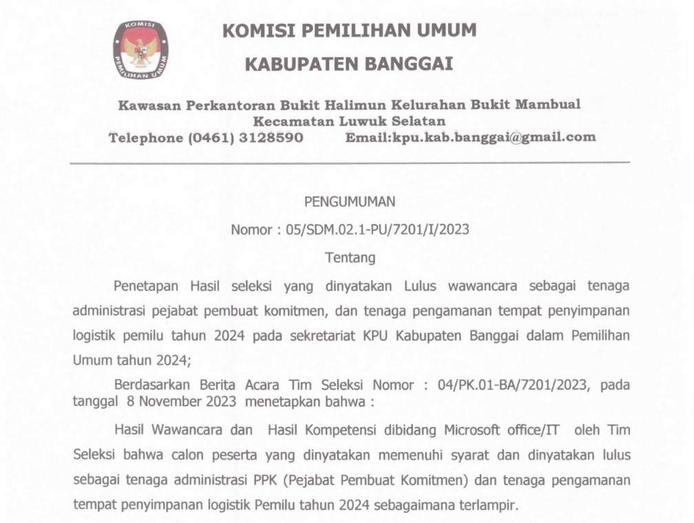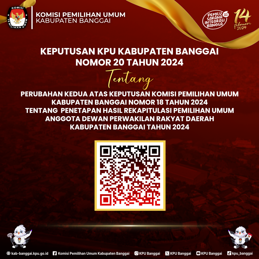#TemanPemilih, Berikut ini adalah Keputusan Komisi Pemilihan Umum Kabupaten Banggai Nomor 20 Tahun 2024 Tentang Perubahan Kedua Atas Keputusan Komisi Pemilihan Umum Kabupaten Banggai Nomor 18 Tahun 2024 Tentang Penetapan Hasil Rekapitulasi Pemilihan Umum Anggota Dewan Perwakilan Rakyat Daerah Kabupaten Banggai Tahun 2024.