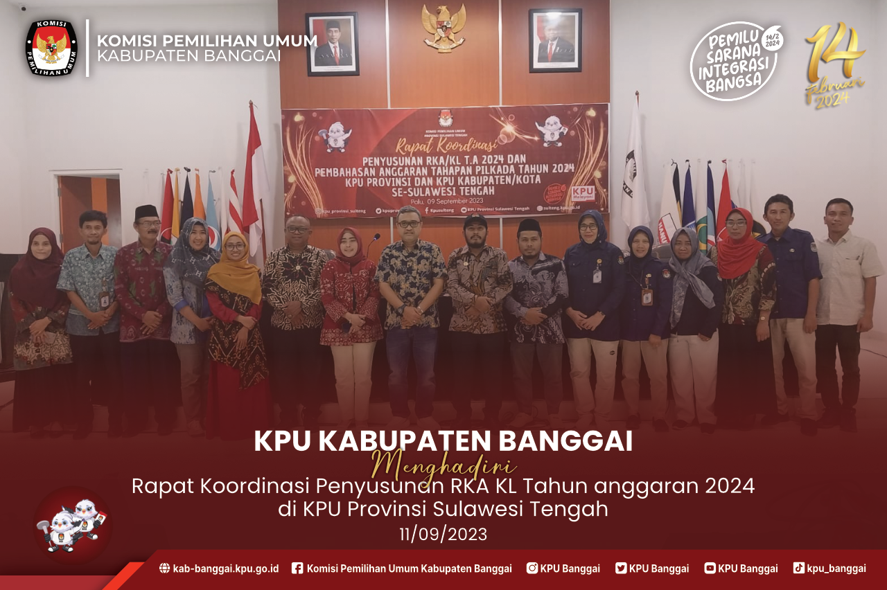 Komisi Pemilihan Umum (KPU) Kabupaten Banggai yang diwakili oleh Ketua Divisi Perencanaan, Data dan Informasi yaitu Abd. Rauf R.A. Barri dan didampingi Kepala Sub Bagian Divisi Perencanaan, Data dan Informasi yaitu Su'dan Masulili serta staf bagian Keuangan yaitu, Farida Lamato di Kantor KPU Provinsi Sulawesi Tengah yang beralamat di Jl. S. Parman No. 58 Palu pada hari sabtu (09/09/2023);